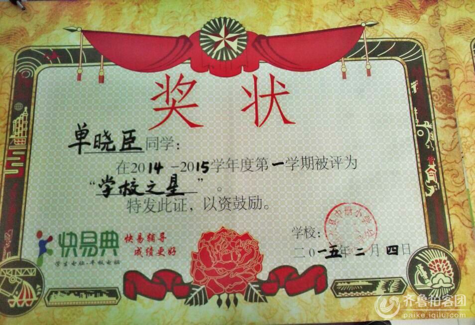 晓臣在校表现很好,是一个积极上进,活泼好动、学习认真、团结同学、尊敬老师‘热爱集体,成绩优秀,多次被评为好学生,今年寒假被评为校级之星。