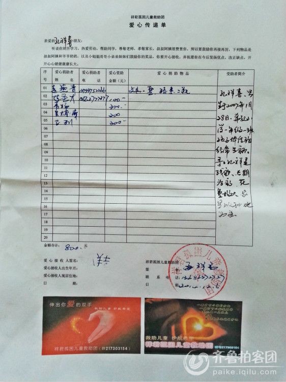 泗水微公益爱心助学---祥君孤困儿童团助力小祥喜(16号)