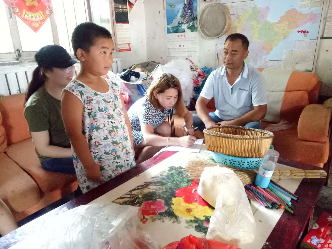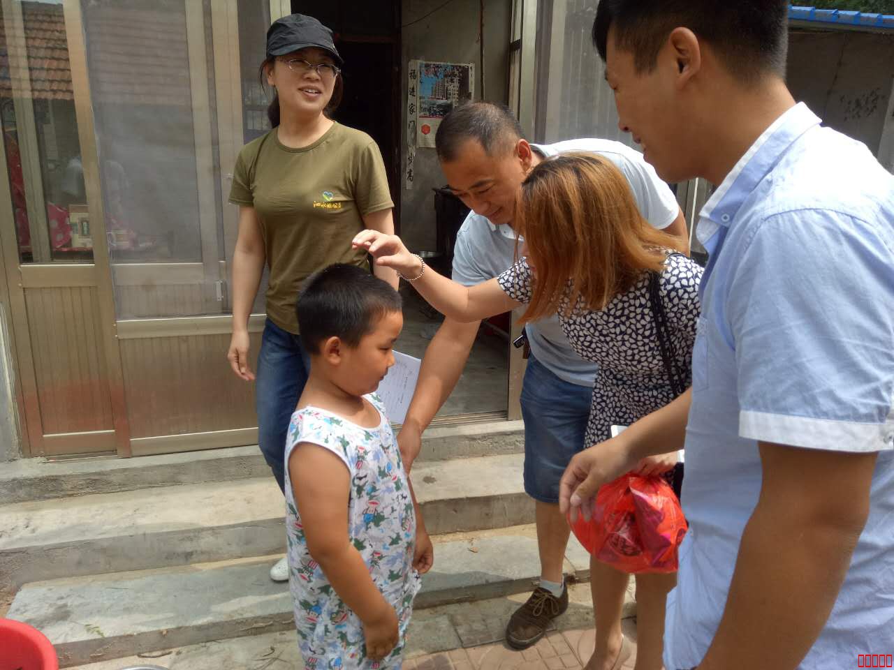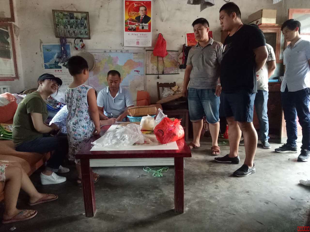 2016年7月17日,星期天,泗水微公益志愿者陪同锦川花生食品有限公司爱心小组一行数人来到小传宝家进行对接。锦川花生食品有限公司公益小组自成立以来,一直关注泗水贫困家庭孩子的教育工作,他们是看到泗水微公益网站发出的帖子得知小祥瑞的爸爸妈妈均有精神病,祥瑞只能跟随六十岁的奶奶一起生活,奶奶又得了再障碍贫血,家中唯独孩子的爷爷健康,还在2015年9月份突发心脏病去世的情况,并决定长期资助小祥瑞等3家孩子。由于时间关系,大家分成3组分别进行对接,我们一行数人来到小祥瑞家里。锦川花生公益小组为小祥瑞带来了800元的助学金,并带来 牛奶、等各种零食和书籍。
